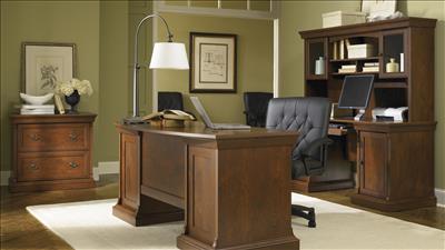 Hekman Office Express Executive Desk With Leather Paneled Top Wayside Furniture Double Pedestal Desk